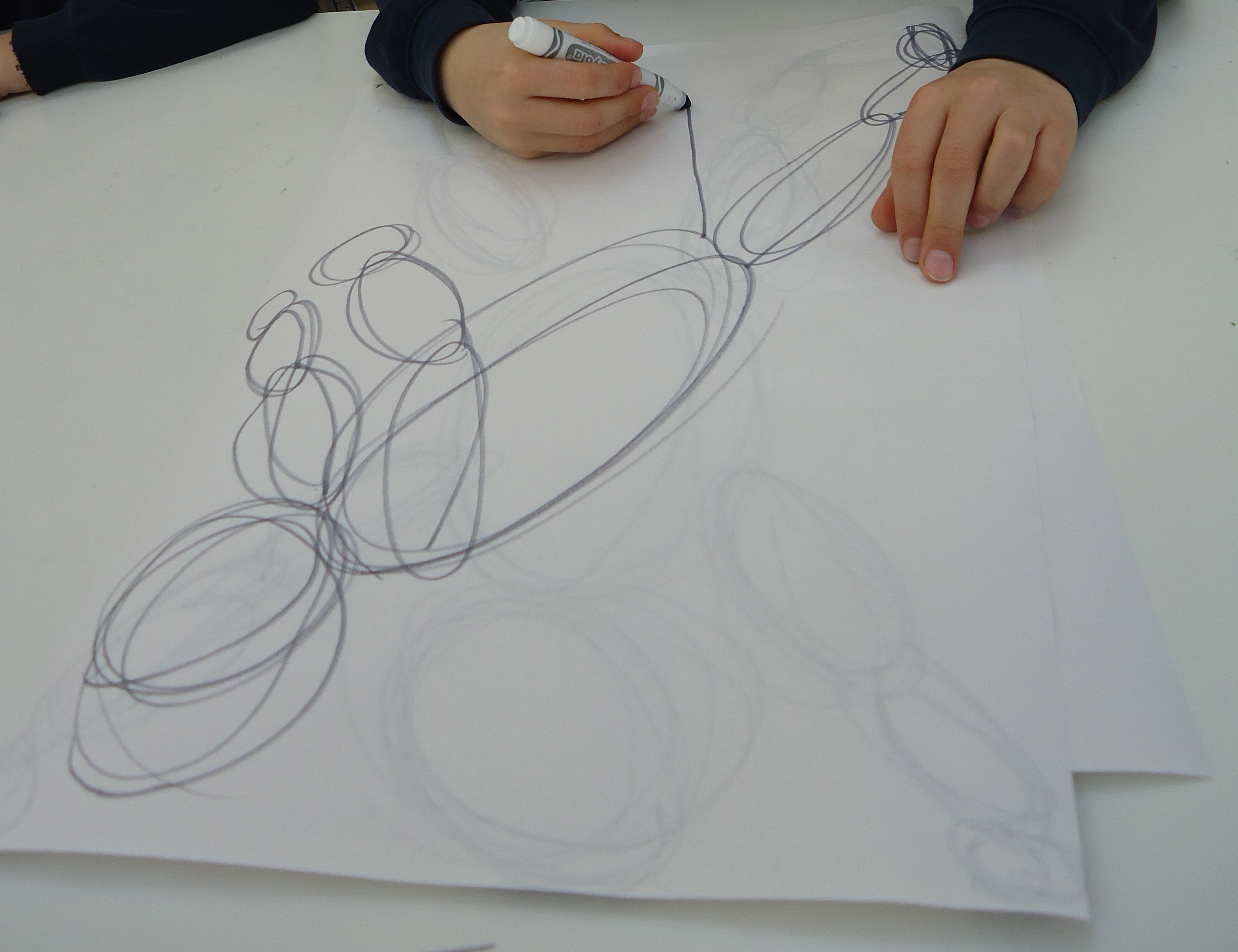 Gesture drawing with children creates an open and accepting classroom environment. It allows students to loosen up their drawing style and helps them to view the “gestalt” of the figure or the big picture.