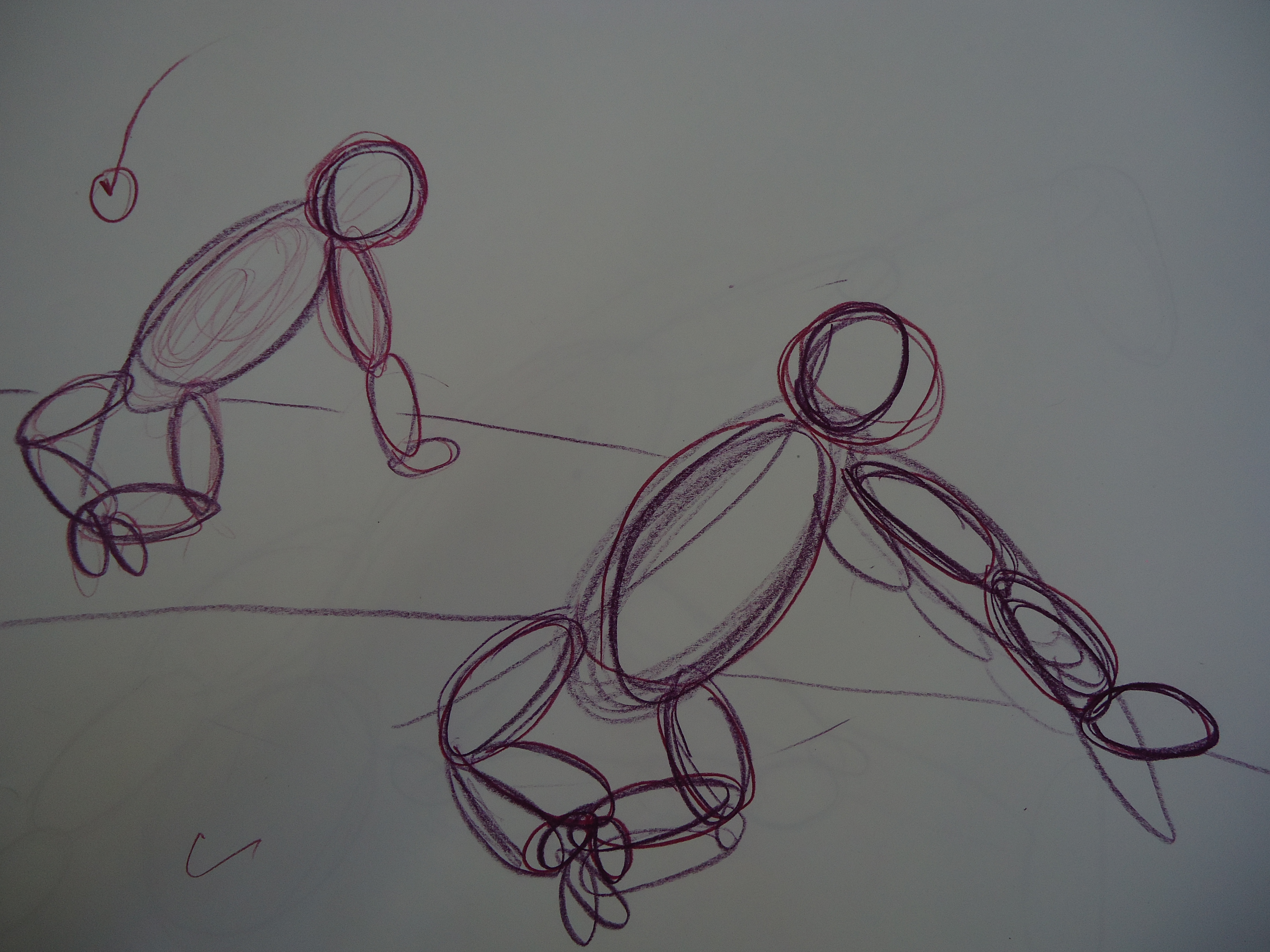 Lesson Development: I talk about the core, or torso, and ask students to draw the core first. Be sure to emphasize the use of the entire page. You may have a few students who tend to focus at the bottom, but because gesture is focused around loosening up, students should be directed to branch out and use the entire space of the page.