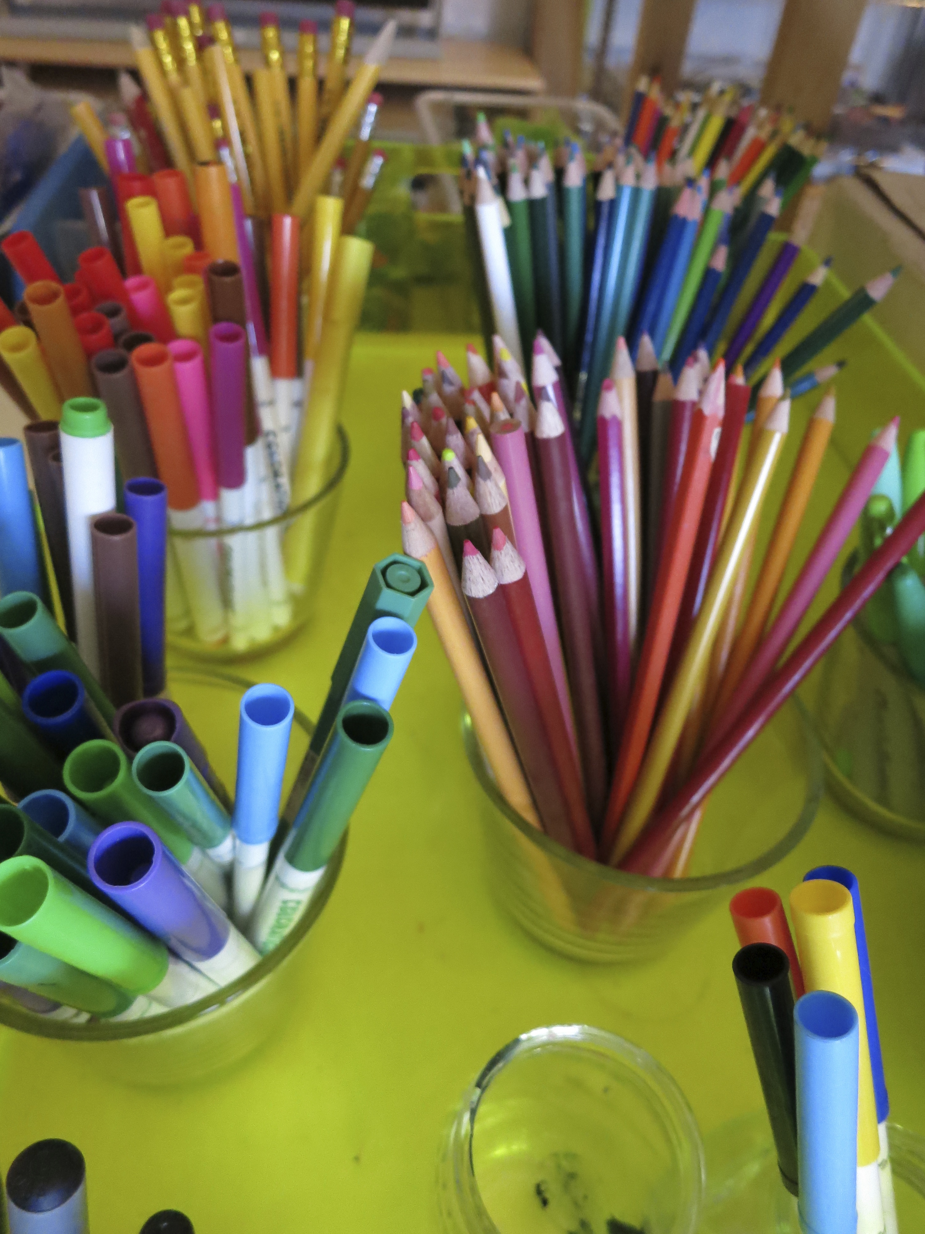 I often catch myself concerned with the way my child chooses to manipulate the materials at hand. My instinct is to change her movements to the way I know to be “correct”. I have made a conscious effort to simply notice how children use the tools that I offer them. I am not judgmental, rather curious, and I use that knowledge to direct how I set up and lead future activities. I go through a filtering process before intervening in the activity. Here is how I see it: When your child asks to take part in something, ask yourself first “Is it safe?” If your answer is Yes then tell yourself that your approval will help your child grow by giving them the opportunity to explore at their own pace and make discoveries on their own terms. This shows them that you respect their ideas and strengthens their self-confidence. When you begin the activity, if things get messy and you find it difficult to settle your nerves, ask yourself “Can it be easily cleaned in the end?” If your answer is Yes, than relax and witness the magic. Give them the tools to manifest their dreams. Notice the materials that are popular. Mimic the movements of your child’s hand to feel what they are feeling. Notice the marks they make on the paper. And share what you see with your child. Praise their creative choices and safe habits. If you are curious about how to talk to your child about their art experience and finished products, read my post about the Language of Learnin